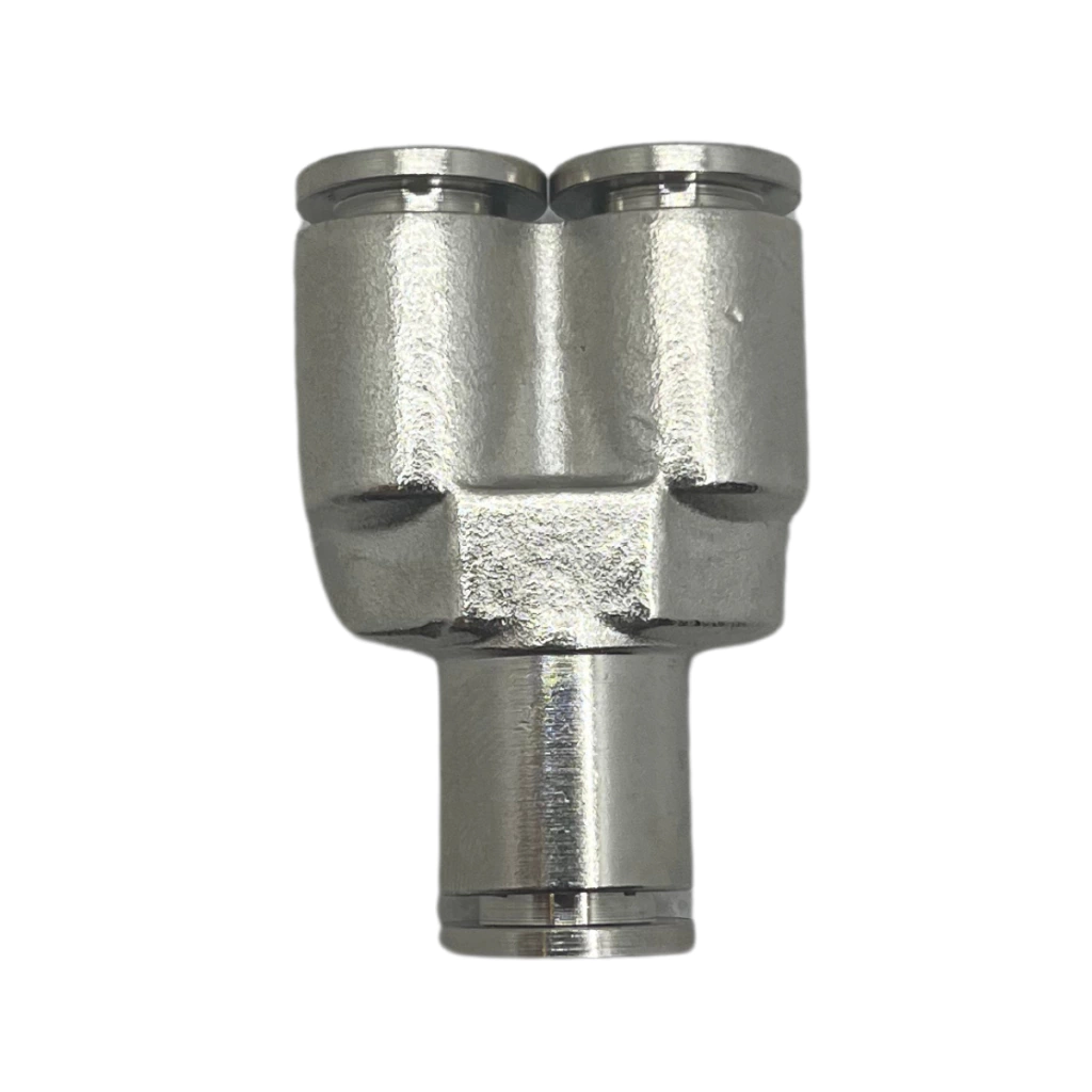 Conexão Pneumática Emenda União em Y Metálica Latão Engate Rápido Tubo PU 10mm