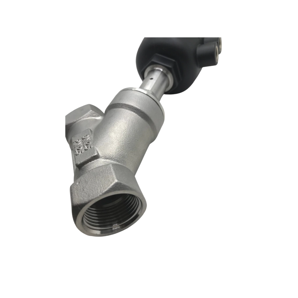 Válvula Angular Pneumática Assento Inclinado Aço Inox 2/2 Vias Simples Ação Rosca 1 Polegada BSP